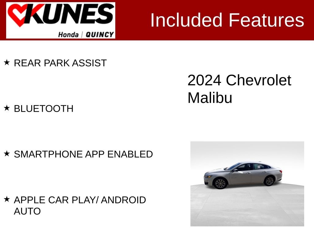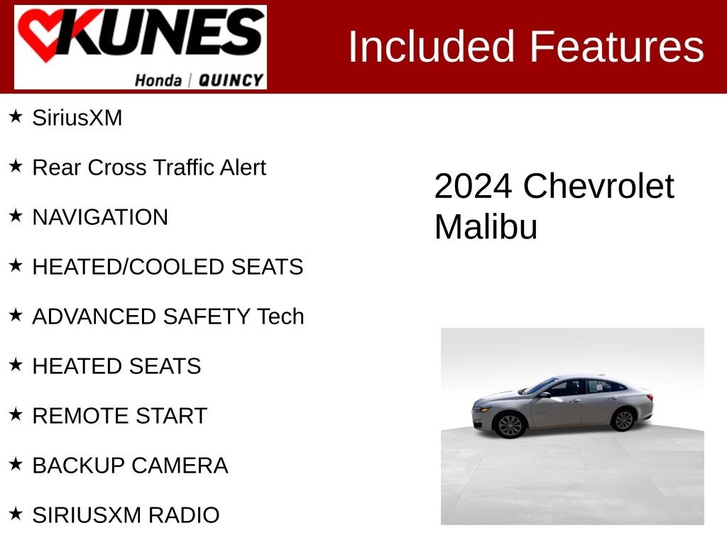 CARFAX One-Owner. Summit White 2024 Chevrolet Malibu LT 1LT FWD CVT 1.5L DOHC NAVIGATION, HEATED/COOLED SEATS, ADVANCED SAFETY Tech, HEATED SEATS, REMOTE START, BACKUP CAMERA, SIRIUSXM RADIO, REAR PARK ASSIST, BLUETOOTH, SMARTPHONE APP ENABLED, APPLE CAR PLAY/ ANDROID AUTO, Black Cloth, Rear Cross Traffic Alert, SiriusXM. 28/36 City/Highway MPG