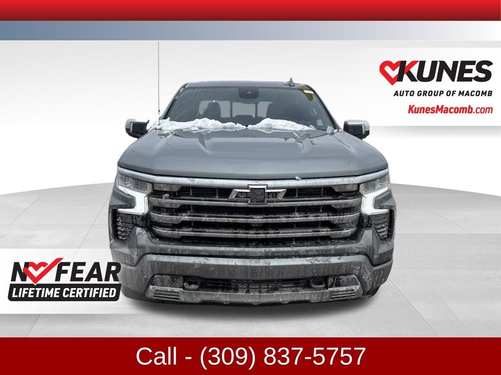 2024 Chevrolet Silverado 1500 High Country NAVIGATION, HEATED/COOLED SEATS, ADAPTIVE CRUISE, ADVANCED SAFETY Tech, HEATED SEATS, PANORAMIC SUNROOF, SUNROOF, REMOTE START, BACKUP CAMERA, REAR PARK ASSIST, 10-Speed Automatic, 4WD, Black Leather, 10-Way Power Driver Seat w/Lumbar, 10-Way Power Passenger Seat Adjuster w/Lumbar, 12.3" Multicolor Reconfigurable Digital Display, 120-Volt Bed Mounted Power Outlet, 120-Volt Interior Power Outlet, 15" Diagonal Multicolor Head-Up Display, 2nd Row Heated Outboard Seats, 3.23 Rear Axle Ratio, 7 Speakers, Alloy wheels, AM/FM radio: SiriusXM with 360L, Auto-dimming door mirrors, Auto-dimming Rear-View mirror, Auto-Locking Rear Differential, Bed View Camera, Body-Color Painted Mirror Caps, Bodyside moldings, Brake assist, Bumpers: body-color, Chevrolet Connected Access Capable, Chevytec Spray-On Black Bedliner, Color-Keyed Carpeting Floor Covering, Compass, Delay-off headlights, Driver door bin, Driver vanity mirror, Dual Exhaust w/Polished Outlets, Dual Rear USB Ports (Charge Only), Electronic Transmission Range Selector Shifter, Floor Mounted Center Console, Front anti-roll bar, Front Bucket Seats, Front Carpeted Floor Mats, Front Center Armrest, Front LED Fog Lamps, Front reading lights, Front Recovery Hooks, Front wheel independent suspension, Garage door transmitter, Genuine wood console insert, Genuine wood dashboard and door panel inserts, Genuine wood dashboard insert, HD Surround Vision, Heated door mirrors, Heated Driver & Front Outboard Passenger Seats, Heated front seats, Heated rear seats, Hitch Guidance, Hitch Guidance w/Hitch View, Illuminated entry, In-Vehicle Trailering System App, Integrated Trailer Brake Controller, IntelliBeam Automatic High Beam On/Off, Keyless Open & Start, LED Cargo Area Lighting, Low tire pressure warning, Occupant sensing airbag, OnStar & Chevrolet Connected Services Capable, Outside Heated Power-Adjustable Mirrors, Outside temperature display, Overhead airbag, Overhead console, Panic alarm, Passenger vanity mirror, Perforated Leather Seat Trim, Perimeter Lighting, Power door mirrors, Power Front Passenger Windows w/Express Up/Down, Power Front Windows w/Driver Express Up/Down, Power passenger seat, Power Sliding Rear Window w/Rear Defogger, Power Tailgate, Power Tilt & Telescoping Steering Column, Radio data system, Rear Carpeted Floor Mats, Rear Cross Traffic Braking, Rear Pedestrian Alert, Rear reading lights, Rear seat center armrest, Rear step bumper, Rear Wheelhouse Liners, Safety Alert Seat, Security system, SiriusXM w/360L, Speed-sensing steering, Split folding rear seat, Standard Tailgate, Tachometer, Telescoping steering wheel, Theft Deterrent System (Unauthorized Entry), Tilt steering wheel, Trailer Camera Provisions, Trailer Side Blind Zone Alert, Trip computer, Ultrasonic Front & Rear Park Assist, Ventilated Driver & Front Passenger Seats, Ventilated front seats, Voltmeter, Wheels: 20" x 9" Painted Aluminum, Wrapped Steering Wheel. Sterling Gray Metallic