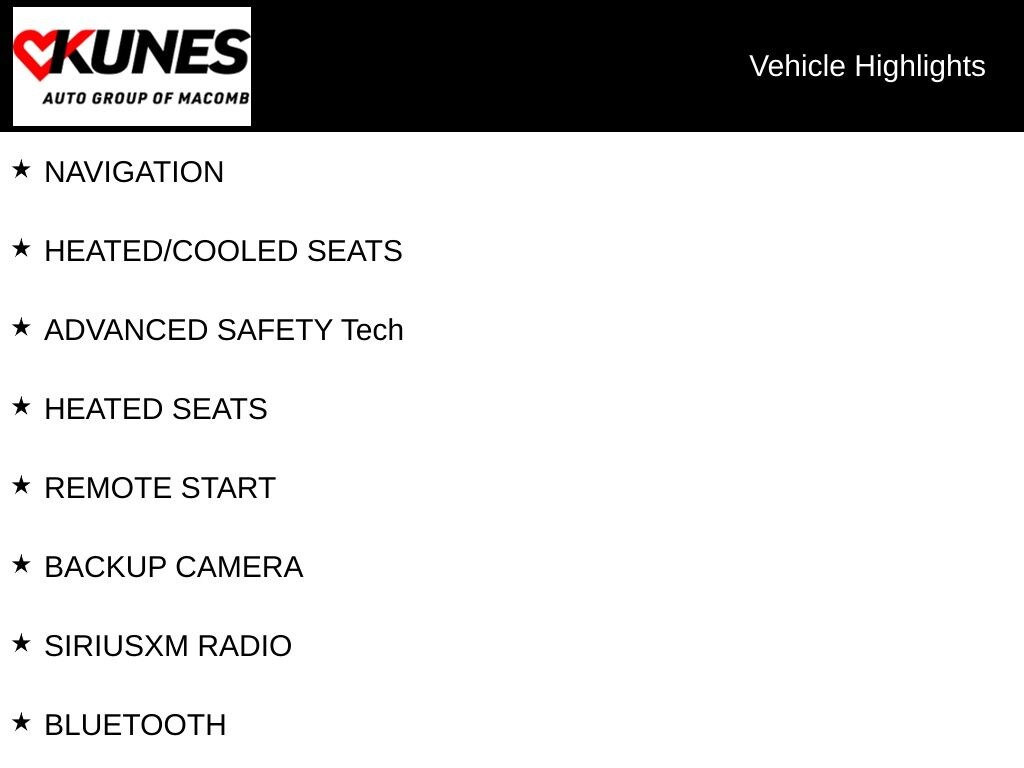 • Driver Convenience Group: heated front and rear seats, heated steering wheel, remote start, Bluetooth, MP3 audio.