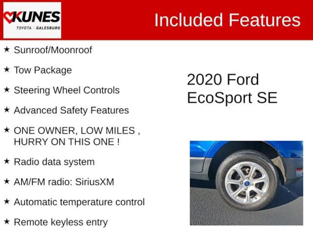 2020 Ford EcoSport SE Lightning Blue Metallic FWD EcoBoost 1.0L I3 GTDi DOHC Turbocharged VCT