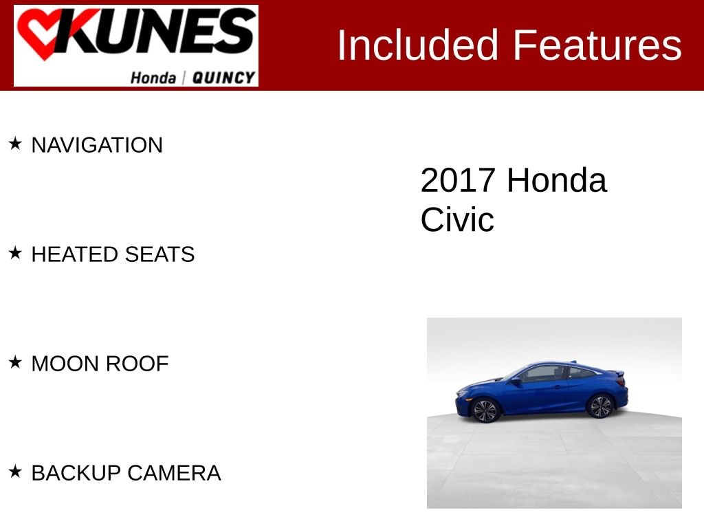 Blue 2017 Honda Civic EX-L FWD CVT 1.5L I-4 DI DOHC Turbocharged NAVIGATION, HEATED SEATS, MOON ROOF, BACKUP CAMERA, Leather. 31/40 City/Highway MPG