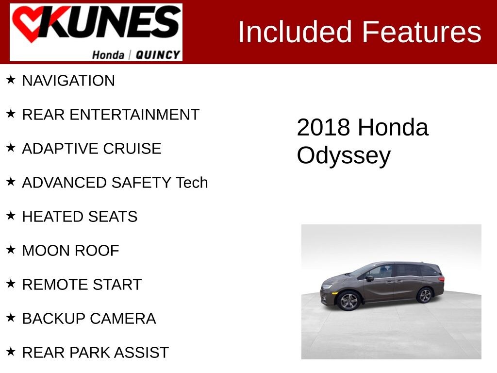 CARFAX One-Owner. Bronze 2018 Honda Odyssey Touring FWD 10-Speed Automatic 3.5L V6 SOHC i-VTEC 24V NAVIGATION, REAR ENTERTAINMENT, ADAPTIVE CRUISE, ADVANCED SAFETY Tech, HEATED SEATS, MOON ROOF, REMOTE START, BACKUP CAMERA, REAR PARK ASSIST, BLUETOOTH, SMARTPHONE APP ENABLED, APPLE CAR PLAY/ ANDROID AUTO, ONE OWNER. 19/28 City/Highway MPG