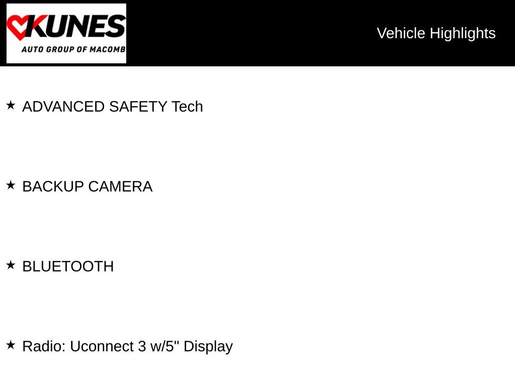 • Wireless phone connectivity: Uconnect w/Bluetooth