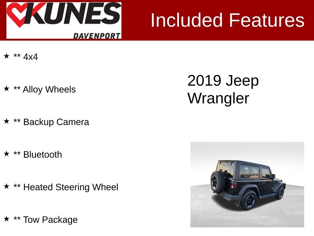 2019 Jeep Wrangler Black Clearcoat Sport S 3.6L V6 24V VVT 8-Speed Automatic