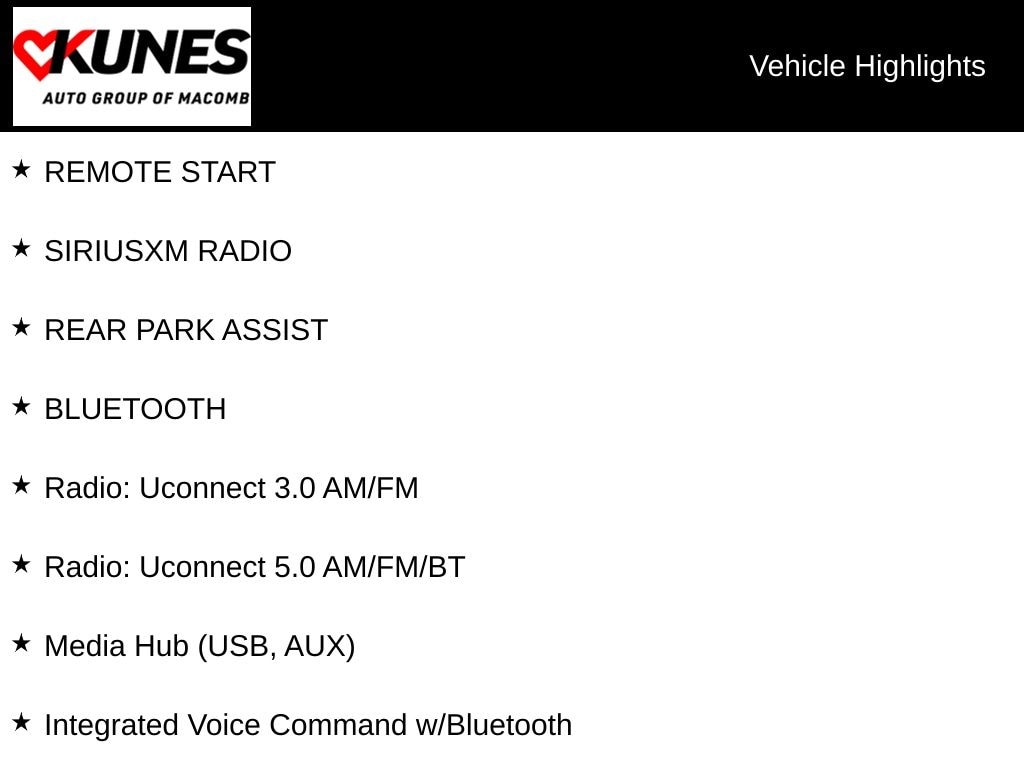 • Radio: Uconnect 3.0 AM/FM
