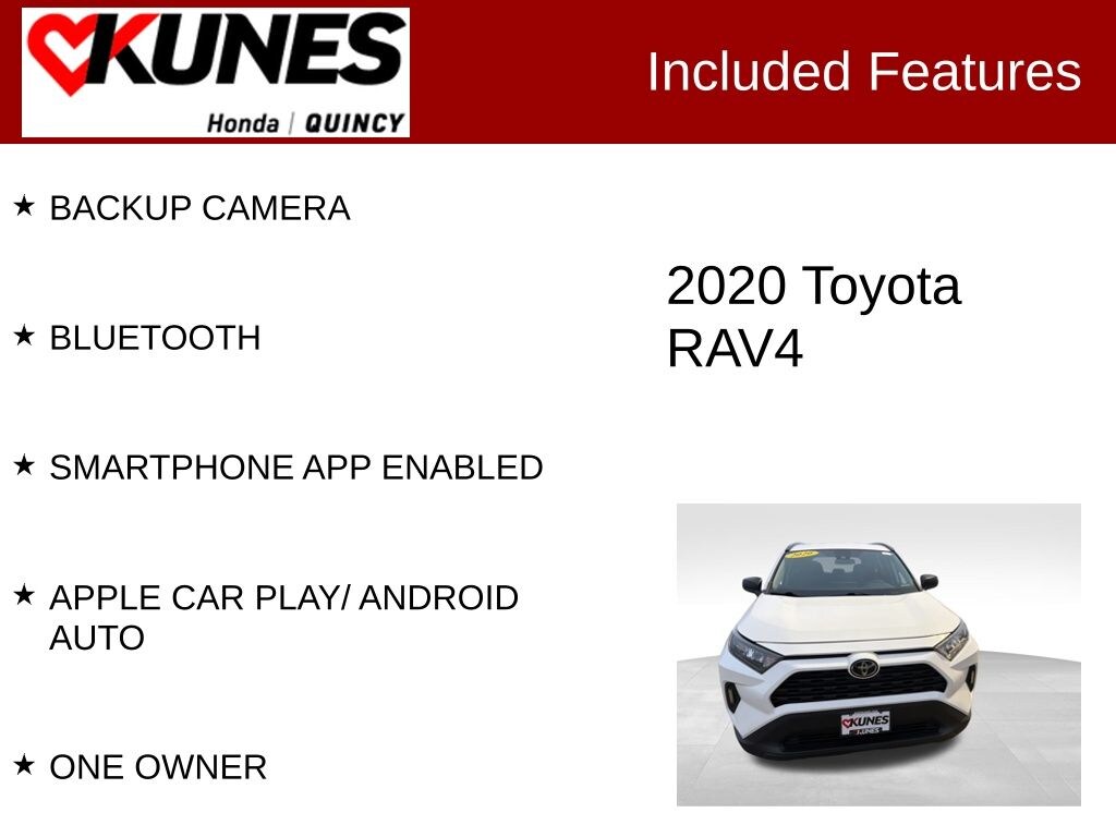 CARFAX One-Owner. White 2020 Toyota RAV4 LE AWD 8-Speed Automatic 2.5L 4-Cylinder DOHC Dual VVT-i BACKUP CAMERA, BLUETOOTH, SMARTPHONE APP ENABLED, APPLE CAR PLAY/ ANDROID AUTO, ONE OWNER, AWD, Light Gray Cloth. 27/34 City/Highway MPG