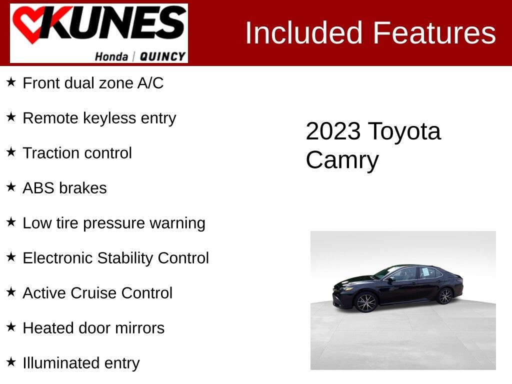 CARFAX One-Owner. Black 2023 Toyota Camry SE AWD 8-Speed Automatic 2.5L I4 DOHC 16V HARD TO FIND AWD!!, Ash Artificial Leather, ABS brakes, Active Cruise Control, Alloy wheels, Electronic Stability Control, Front dual zone A/C, Heated door mirrors, Illuminated entry, Low tire pressure warning, Remote keyless entry, Traction control. 25/34 City/Highway MPG